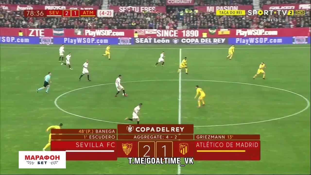 وحجز إشبيلية مقعدا له في المربع الذهبي، بعد أن جدد فوزه على أتلتيكو مدريد، وكان قد فاز عليه في مباراة الذهاب أيضا (2-1)، على أتلتيكو في عقر داره ملعب "Stadium Metropolitano de Madrid" في العاصمة مدريد.