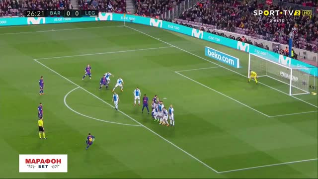 وافتتح ليونيل ميسي التسجيل للفريق الكاتالوني، في الدقيقة الـ 27، وأسكن الكرة في الزاوية اليمنى، بتسديدة متقنة من ضربة حرة مباشرة.