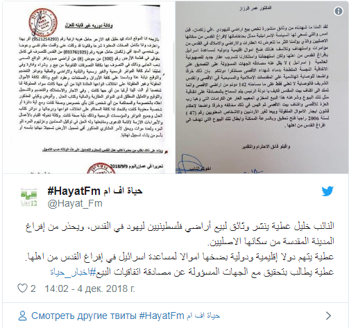 ونشر عطية وثائق تشير إلى موافقة مواطن يحمل الهوية الأردنية على بيع مستوطن إسرائيلي، أرضا في صور باهر بقضاء القدس.