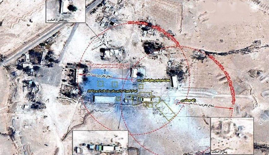 وكشف حرس الثورة عن صورتين فوتوغرافيتين للموقع قبل وبعد استهدافه.