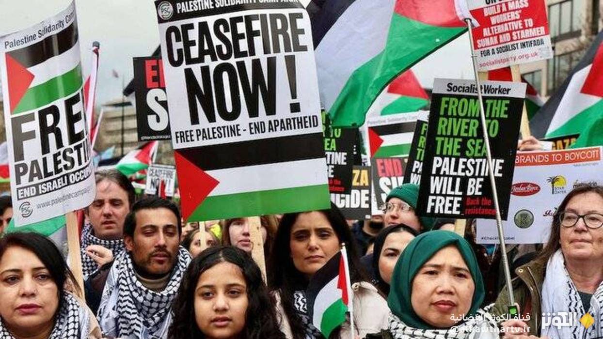 وفي بريطانيا، وللمرة الـ30 منذ بدء الحرب على غزة، تظاهر عشرات الآلاف في العاصمة البريطانية لندن، احتجاجا على الإبادة الجماعية التي ترتكبها إسرائيل بحق الشعب الفلسطيني.