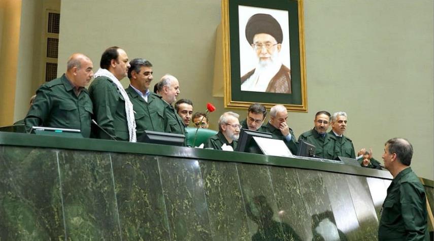 ايران_الكوثر: حضر جمیع نواب مجلس الشورى الإسلامي {البرلمان} في إيران، الیوم الثلاثاء، في جلسة اليوم بزي الحرس الثوري الرسمي بمناسبة یوم الحرس الثوري المصادف 9 نیسان/ابریل، وذلك احتجاجا على قرار واشنطن في ادراج الحرس الثوري وهو جزء من القوات العسكریة الایرانیة في قائمة الارهاب الامیركي.