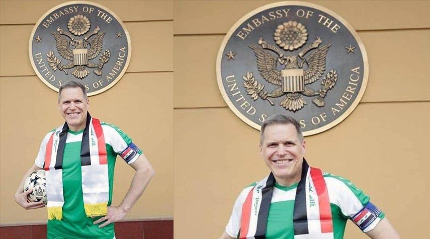 ليس غريبا أن يجامل السفراء شعوب الدول في مناسباتهم الوطنية بدلالات رمزية بسيطة، أما أن يلبس السفير ملابس المنتخب العراقي كاملة، ويحرص على وضع إشارة كابتن الفريق على ذراعه، والشعار الرسمي للسفارة الامريكية خلفه، فتلك رسالة سياسية صرفة عليكم ان تفهموها قبل أن تظنوا انه يؤازر فريقكم حبا بالعراق..