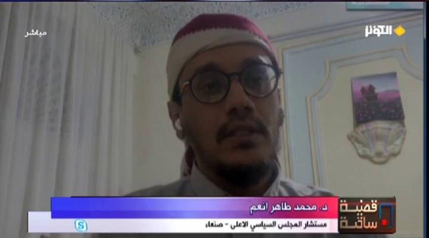 " الرسالة المرادة من عرض مشاهد احتراق السفينة البريطانية " هو ما تحدث عنه مستشار المجلس السياسي الأعلى من صنعاء الدكتور "محمد طاهر انعم " ضمن مشاركته في حلقة الأمس من برنامج قضية ساخنة .