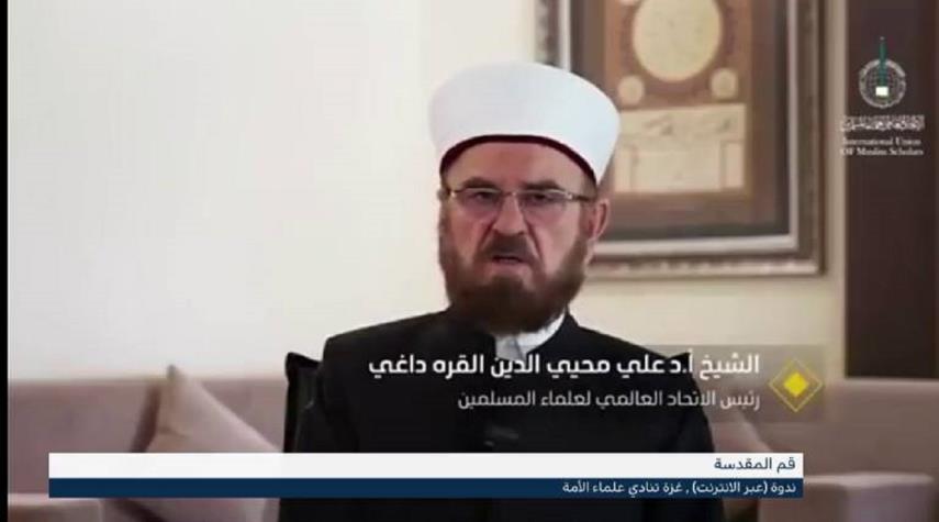 تحدث رئيس الاتحاد العالمي لعلماء المسلمين الشيخ الدكتور علي محيي الدين القره داغي خلال مشاركته في الندوة التي دت اليها الحوزة العلمية في ايران بعنوان" غزة تنادي علماء الامة" عن غزة اليوم بين قتل بالسلاح وقتل بالعطش والجوع.