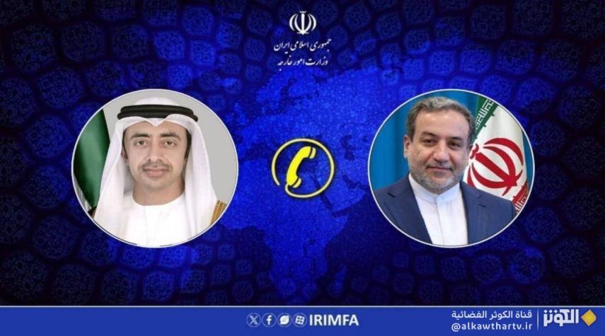 استعرض وزير خارجية الجمهورية الإسلامية الإيرانية، عباس عراقجي، احدث التطورات الإقليمية والدولية خلال اتصال هاتفي مع وزير خارجية الإمارات العربية المتحدة الشيخ عبد الله بن زايد آل نهيان،.