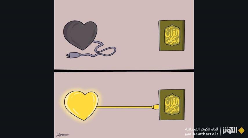 قدم الفنان كمال شرف عملا ًجديدا بمناسبة شهر رمضان المبارك ، الكاريكاتير يرمز إلى أن القلب بلا صلة بالقرآن يبقى معتمًا وفاقدًا للحياة، بينما يتحول إلى مصدر نور وطمأنينة حين يتصل بكلام الله ويستنير به.