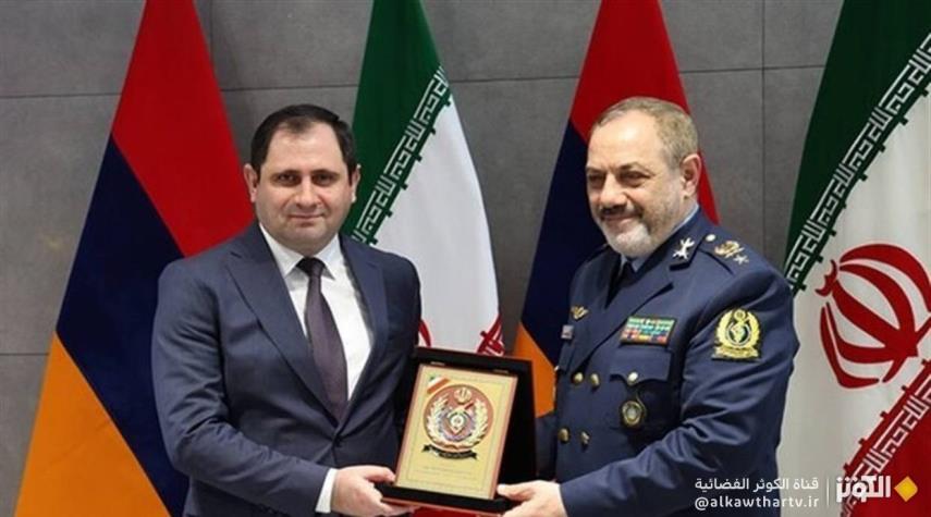 أكد وزير الدفاع وإسناد القوات المسلحة الايراني العميد طيار عزيز نصيرزادة، خلال لقائه بنظيره الأرميني، سورين بابيكيان على عمق العلاقات التاريخية والاستراتيجية بين البلدين، مشدداً على معارضة طهران لأي تغيير في الجغرافيا السياسية للمنطقة ولتدخلات اللاعبين من خارجها.