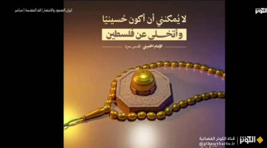 صورة تحمل معانٍ كثيرة، مسبحة تشير إلى المسجد الأقصى، والعبارة المصاحبة للصورة تؤكد أنه "لا يمكن أن يكون الشخص حسينياً ويتخلى عن فلسطين" ولا يمكن لأي شخص أن يعتنق الفكر الحسيني ويتخلى عن القضايا الإسلامية الكبرى،