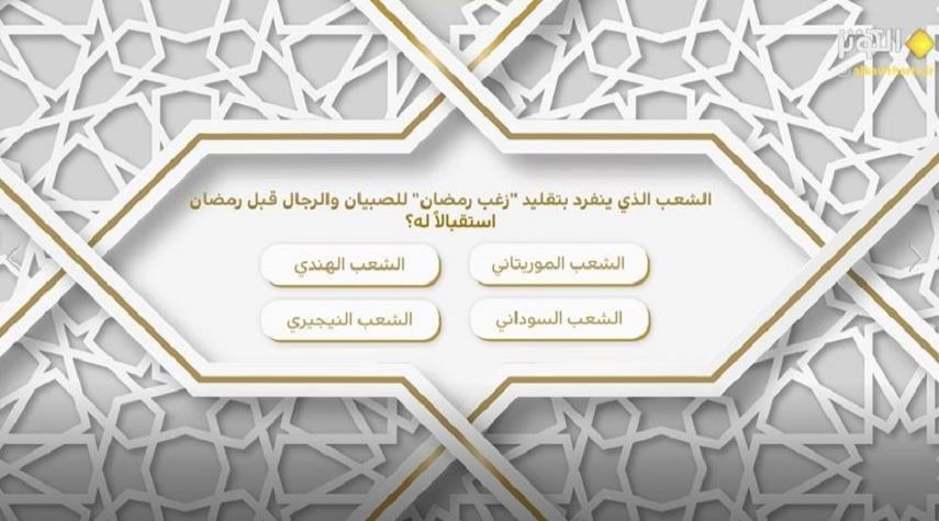 ثمة سؤال مطروح ضمن الفقرة الرمضانية المميزة "أمتنا" من اعداد قناة الكوثر الفضائية وهو " اي بلد افريقي يستقبل رمضان بزفه رمضانية"