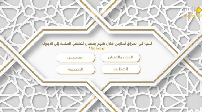 ثمة سؤال مطروح ضمن الفقرة الرمضانية المميزة "أمتنا" من اعداد قناة الكوثر الفضائية وهو " لعبة في العراق تمارس خلال شهر رمضان لتصفي المتعة الى الاجواء الروحانية؟"