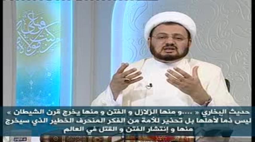 فقه الإسلام- الكوثر: تحدث سماحة الشيخ أسد محمد قصير عن حديث البخاري هذا "... ومنها الزلازل والفتن ومنها يخرج قرن الشيطان" وأكد أنه ليس ذما بل تحذير للأمة الإسلامية من الفكر المنحرف الخطير الذي سيخرج منها وإنتشار الفتن والقتل في العالم...