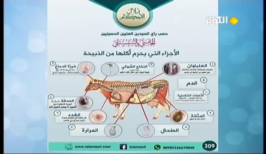 عرف الشيخ اسد محمد قصير اجزاء محرمات الاكل من الذبيحة من الصورة
