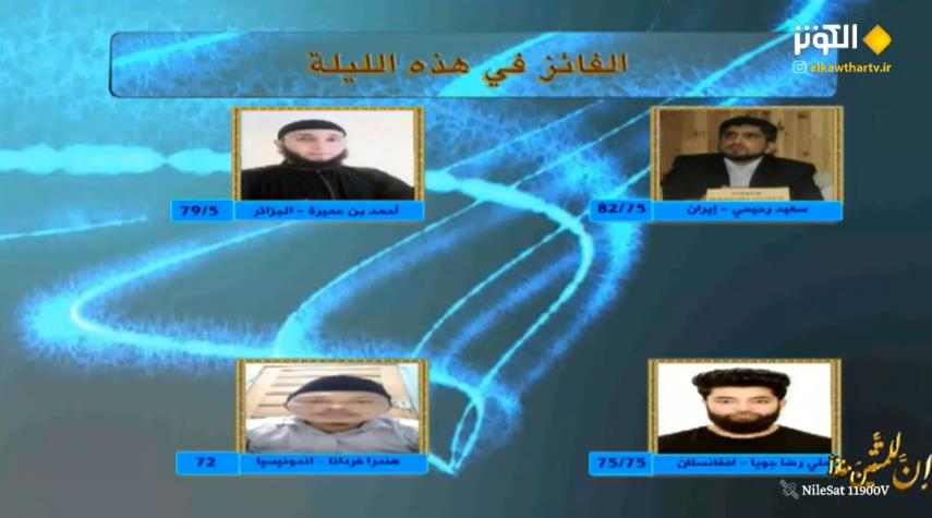 شارك في الليلة الخامسة من مسابقة "إن للمتقين مفازا" الدورة السادسة عشرة لشهر رمضان 2023 كل من المتسابقين: القارئ آية الله احمد شوري من اندونيسيا ،القارئ خليل هوشنك سواري من الجمهورية الاسلامي الايرانية ، القارئ براق منير بشير من العراق ، القارئ محمد ابراهيم محمد من مصر.