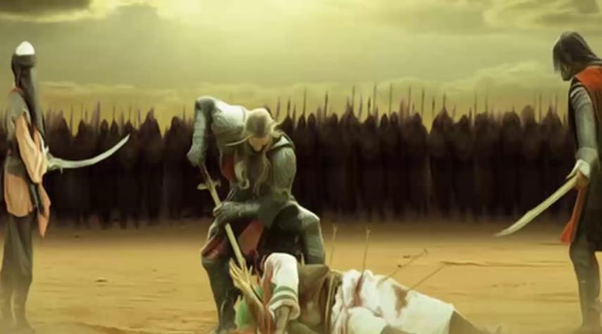 في تلك الوضاع حيث اجتمع الأعداء حول جسد الحسين عليه السلام وشرع كلّ واحد منهم بتوجيه ضربة لجسده الشّريف..