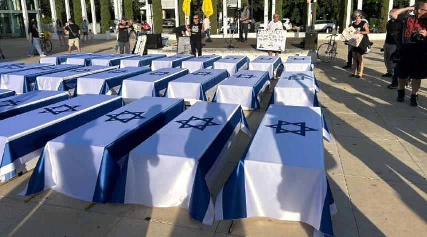 احتجاجات الصهاينة بالتوابيت وسط "تل أبيب"