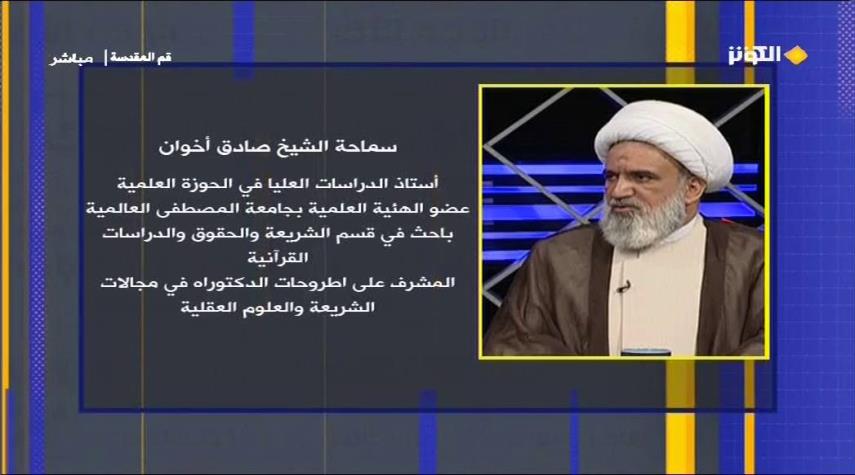 تحدث أستاذ الدراسات العليا في الحوزة العلمية سماحة الشيخ "صادق إخوان" خلال مشاركته في حلقة الأمس من برنامج" الوجه الآخر " حول الوحدة بين أبناء الأمة الإسلامية .