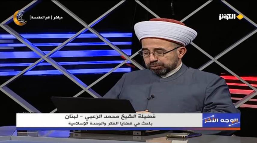 تحدث فضيلة الشيخ محمد الزعبي الباحث في قضايا الفكر والوحدة الاسلامية خلال مشاركته في برنامج الوجه الاخر الذي بحث موضوع " قتال العدو القريب والبعيد بين الرؤية الدينية ورؤية ابن تيمية وداعش" وقال ان التنظيمات المتطرفة تركت العدو القريب وانتهجت الى العدو البعيد خدمة للكيان للمصالح الامريكية.