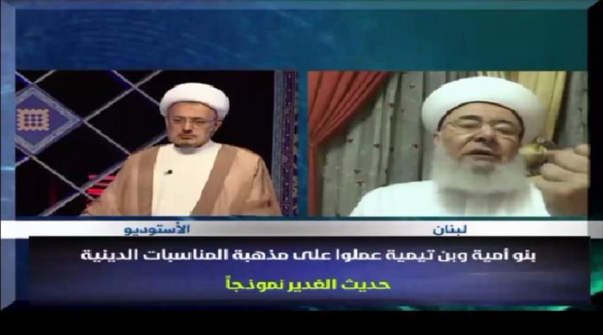 خاص الكوثر: اكد فضيلة الشيخ غازي حنينة في برنامج الوجه الآخر ، ان بنو أمية وبنو تيمية عملوا على مذهبة المناسبات الدينية و حديث الغدير نموذجا على ذلك.