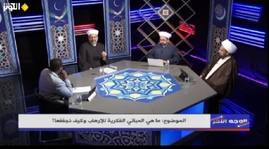 خاص الكوثر _ برنامج الوجه الآخر: بحث المقدم عمار مكي مع السادة الشيوخ الأفاضل في الحلقة الثانية عشر من أيام شهر رمضان المبارك حول موضوع ماهية المباني الفكرية للإرهاب وكيفية تجفيف منابعها.