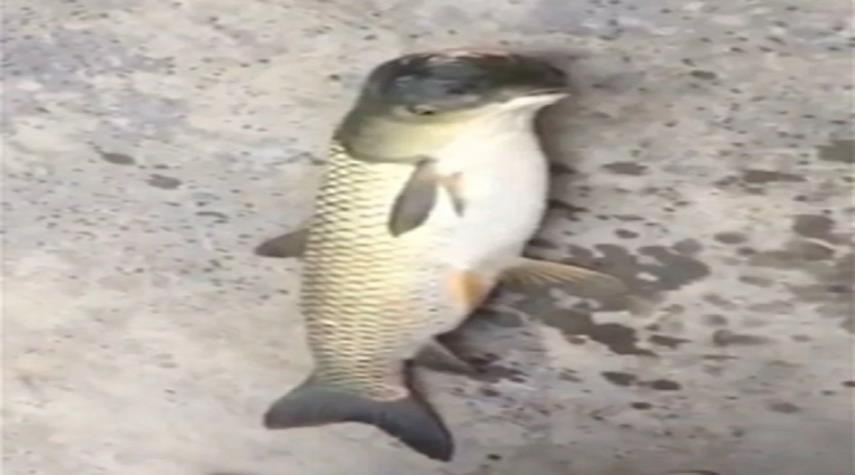 شاهد بالفيديو..سمكة غريبة برأس بطريق !!
