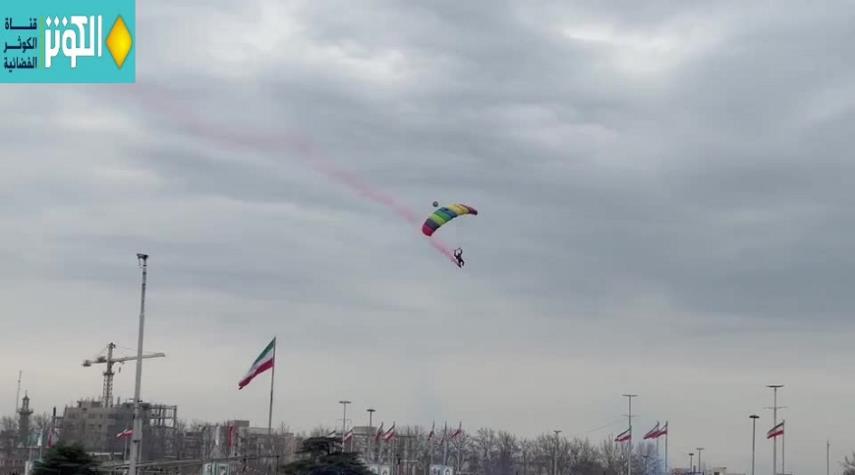 ايران_الكوثر: انتشر مقطع فيديو بشكل كبير لهبوط مظليين في ساحة ازادي (الحرية) بالعاصمة طهران بمناسبة الذكرى 43 لانتصار الثورة الاسلامية المباركة