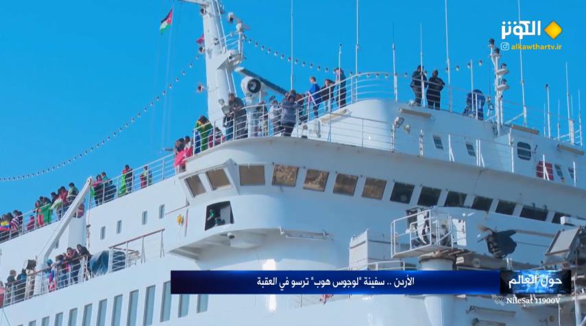 رست سفينة شواطئ مدينة العقبة جنوبي الادرنية سفينة «لوجوس هوب» التي تحمل على متنها أكبر مكتبة عائمة بالعالم.
