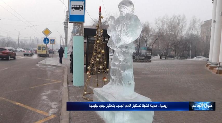 قامت السلطات مدينة تشيتا الروسية في اطار التحضير لاعياد الميلاد ورأس السنة الميلادية بتزين الساحة الرئيسية في المدينة بمنحوتات جليدية تمثل جنودًا فيالجيش الروسي.