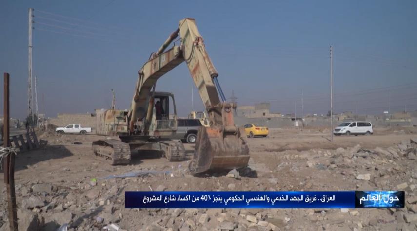 فريق الجهد الخدمي والهندسي الحكومي العراقي ينجز 40% من اكساء شارع المشروع.