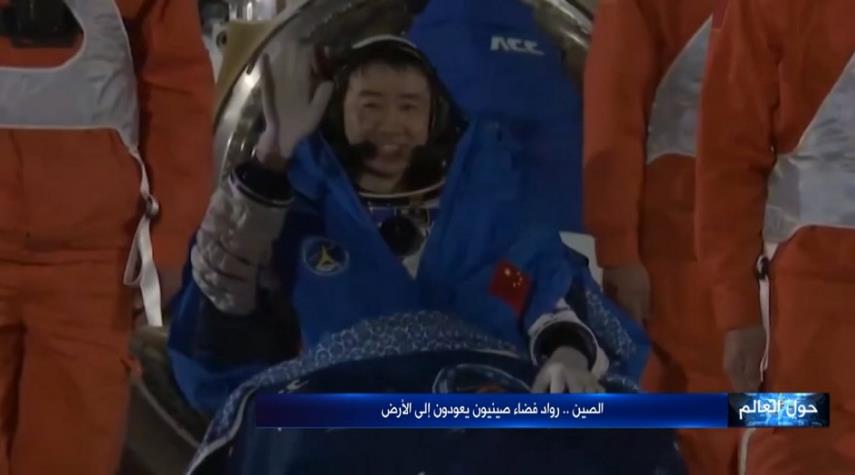 شاهد.. رواد فضاء صينيين يعودون الى الارض