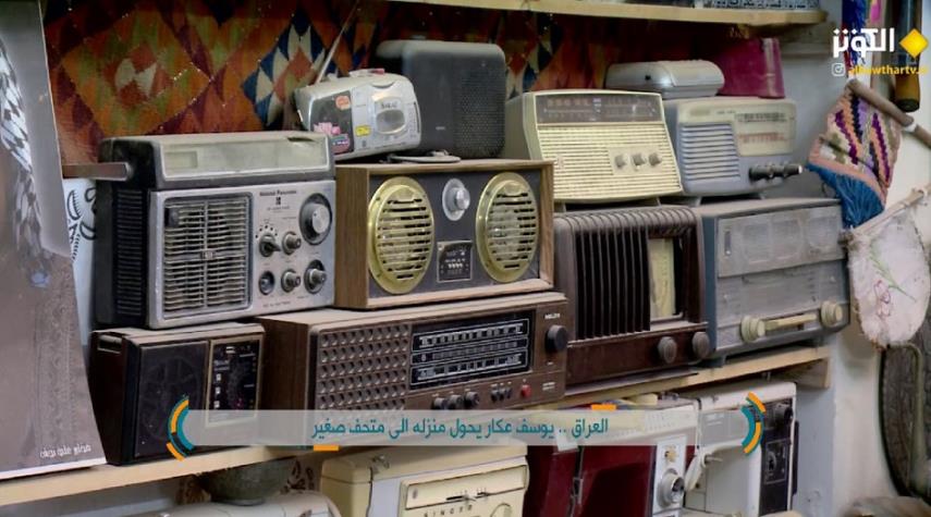 الحاج يوسف عكار الاستاذ المتقاعد الذي يهوى جمع مقتنيات تاريخية حول بيته الى متحف صغير شاهد على حقب من تاريخ العراق الحديث.