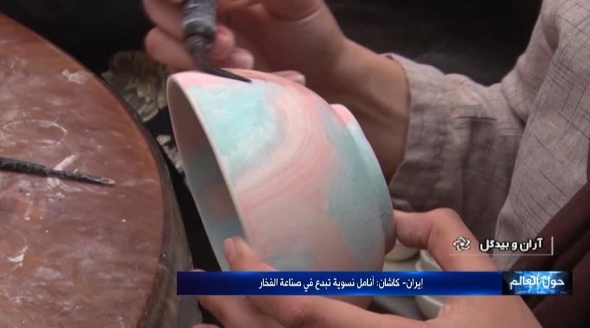 أنامل نسوية تبدع في صناعة الفخار في كاشان.