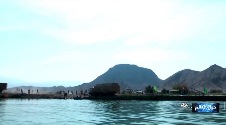 اقامت القوات البرية لحرس الثورة الاسلامية خلال التدريبات الاخيرة التي تم تنفيذها في "مناورات الاقتدار" جسرا فوق نهر أراس (شمال غربي ايران) لعبور الآليات المدرعة والوحدات الهندسية .