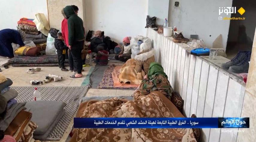 في اطار الجهود العراقية لاستجابة لحاجات الشعب السوري تواصل الفرق الطبية لحشد الشعبي تقديمها الخدمات للمتضررين من الزلزال في مدينة حلب السورية.