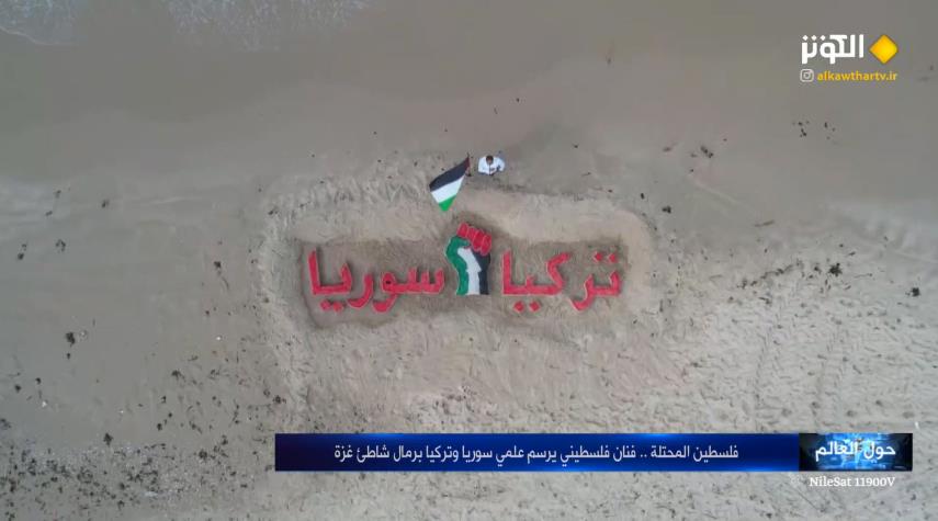 حول العالم ... فنان فلسطيني يتضامن مع سوريا وتركيا بلوحة فنية