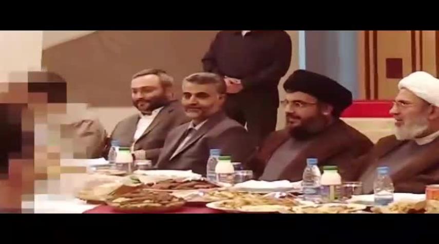 تداول نشطاء على مواقع التواصل الاجتماعي مقطع فيديو للشهيد عماد مغنية و الشهيد الفريق قاسم سليماني قائد قوات القدس في حرس الثورة الاسلامية في ايران في محضر الامين العام لحزب الله السيد حسن نصر الله .