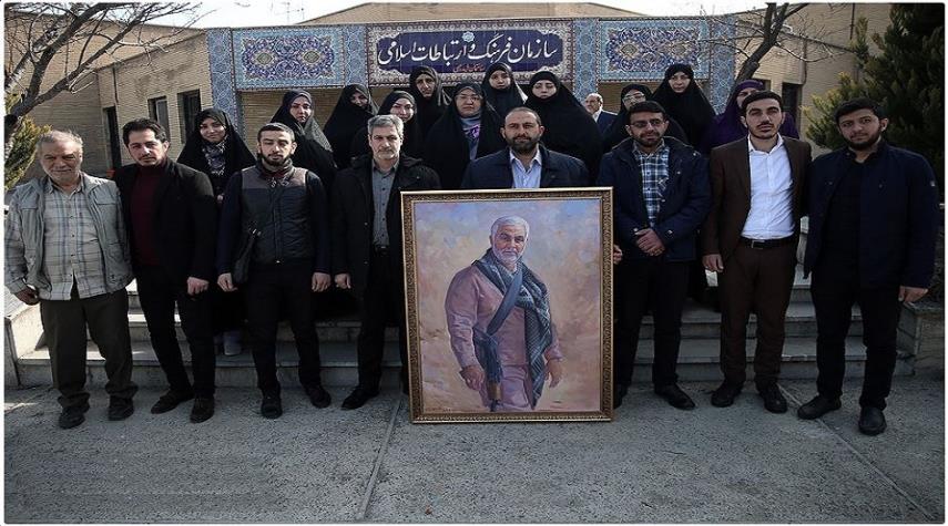 ايران-الكوثر: قام عدد من مواطني جمهوية أذربيجان عصر السبت 15 فبراير 2020 باهداء لوحة تضمّ صورة للشهيد الفريق الحاج قاسم سليماني مرتدياً اللباس العسكري رسمها الفنان والرسام الأذريجاني "فضولي شفيعوف" الى قائد الثورة الاسلامية في ايران سماحة آية الله السيد علي الخامنئي.