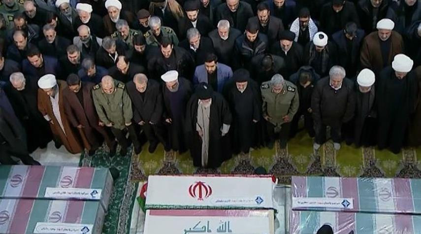 في مشهد مؤثر ..دموع قائد الثورة على الشهيدين سليماني والمهندس