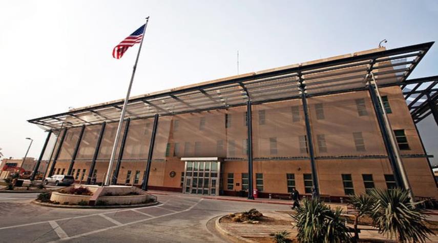 شاهد..صور الشهيدين سليماني والمهندس امام السفارة الأمريكية ببغداد