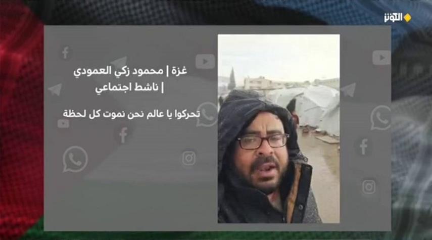 رسالة الى العالم من قبل الناشط الاجتماعي محمود زكي العمودي من قطاع غزة الذي يعاني هذه الايام من البرد القاسي والامطار.