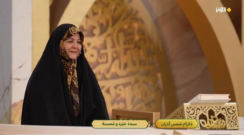 السيدة دلارام شمس آذران تتحدث ضمن برنامج محفل عن قصتها في بيع الذهب ونشاطهاالخيري من أجل جمع التبرعات دعماً للشعب الفلسطيني المظلوم في غزة .