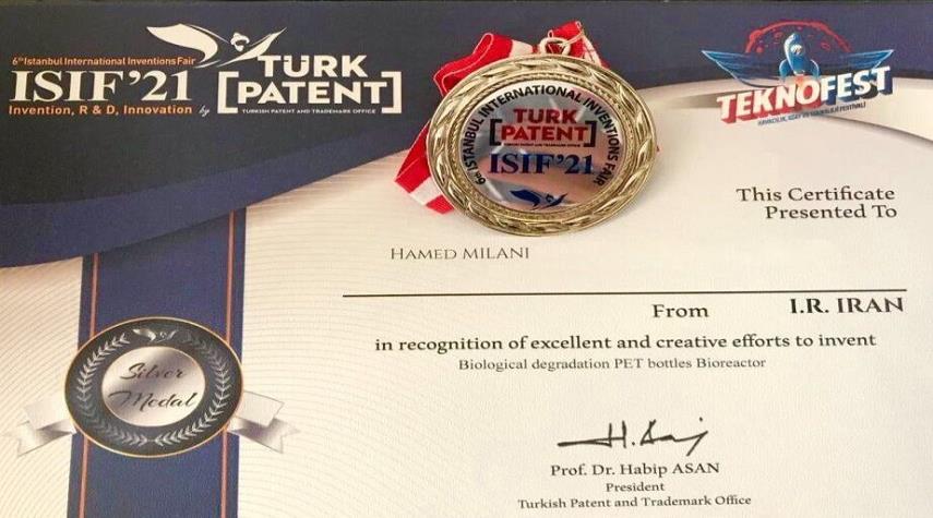 ايران-الكوثر: حصل الباحث والطبيب الإيراني حامد ميلاني علی الميدالية الفضية في المسابقة الدولية للاختراعات بترکیا عن اختراعه مفاعل بيولوجي یزید من سرعة تحلل البلاستيك إلى حوالي 30 ساعة وذلك لأول مرة في العالم.