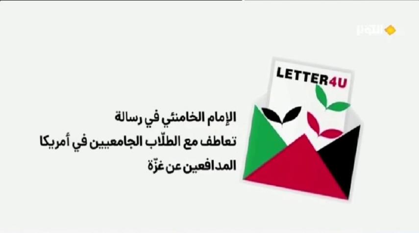 وجه قائد الثورة الاسلامية الامام الخامنئي رسالة الى الشباب والطلاب الجامعيين في الولايات المتحدة الاميركية الذين نزلوا الى الميدان للدفاع عن اطفال غزة ونسائها معربا فيها عن تعاطفه معهم ومؤازرته لهم وقال سماحته لهم إن التأريخ يطوي صفحاته وإنهم في الجهة الصحيحة منه