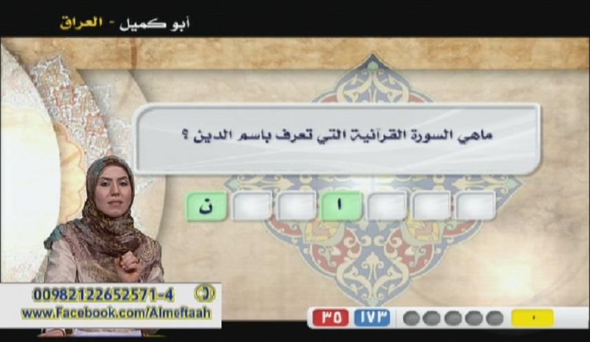 المفتاح – الكوثر: سؤال هذا الأسبوع لمشاهدي مسابقة المفتاح على قناة الكوثر الفضائية كما يلي: