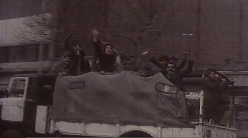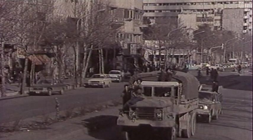 مشاهد من سيطرة الثوار على مركز شرطة نارمك في طهران خلال الثورة الإسلامية، وتطهير المراكز الأمنية من فلول نظام الشاه.
