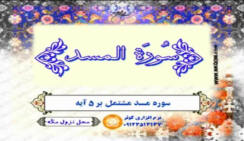 سورة المسد مع ترجمة باللغة الفارسية والإنجليزية