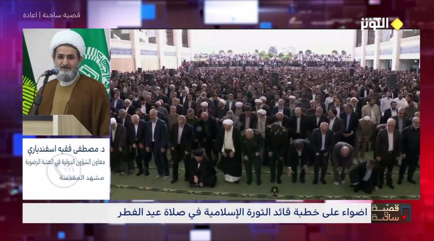 خطبة قائد الثورة الإسلامية في صلاة عيد الفطر المبارك التي جدد من خلالها التأكيد على أنه إذا قام الأعداء بأي تهديد لإيران فإنّهم سيتلقّون ضربة شديدة، مشددا على أن مواقف إيران هي المواقف نفسها التي كانت سابقًا، وعداوة الكيان الصهيوني وأميركا باقية.