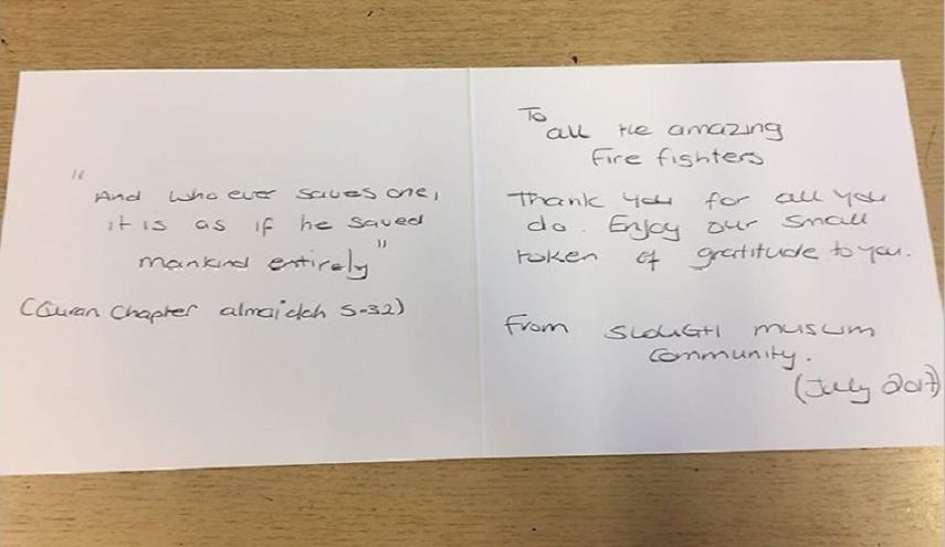 تقديم الشكر لرجال الإطفاء في لندن بآية من القرآن