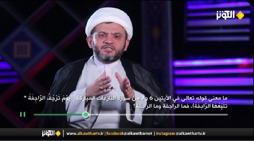 خاص الكوثر_اسئلتكم: يفسر سماحة الشيخ جواد الامين في برنامج اسئلتكم معنى قوله تعالى: مامعنى قوله تعالى: {يوم ترجف الراجفة و تتبَعها الرادفة}.