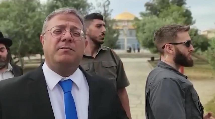 اقتحم ما يسمى بـ"وزير الأمن القومي الصهيوني" ايتمار بن غفير برفقة عدد من المستوطنين باحات المسجد الأقصى المبارك، اليوم الأحد، وسط حراسة أمنية مشدّدة.